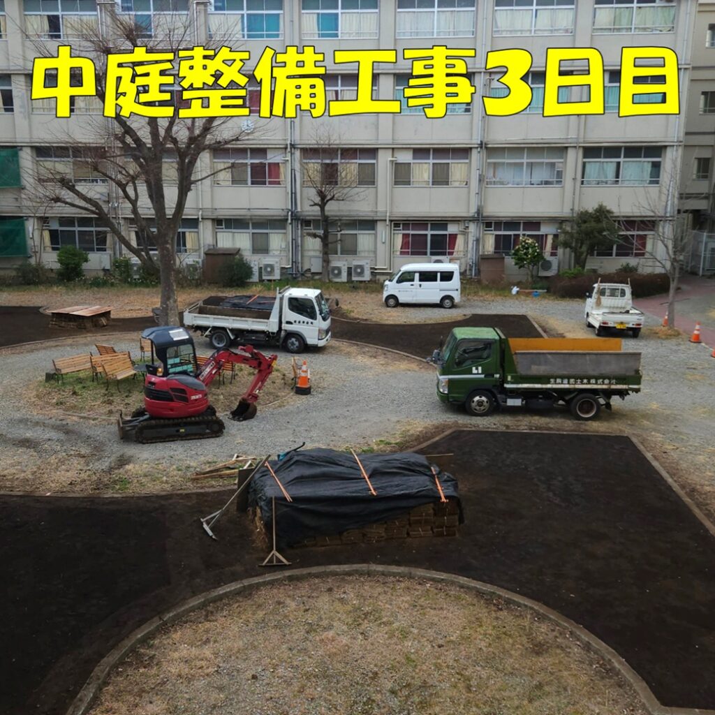 中庭整備工事3日目の様子